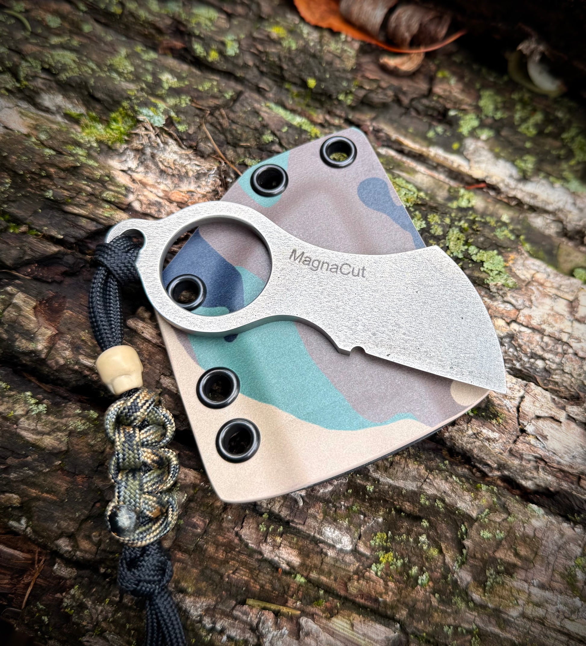 Forged from MagnaCut stainless steel and cloaked in a matte finish, it shrugs off glare, laughs at rust, and thrives in the wild. The uncomplicated handle offers control so smooth, it feels like the blade’s an extension of your hand.