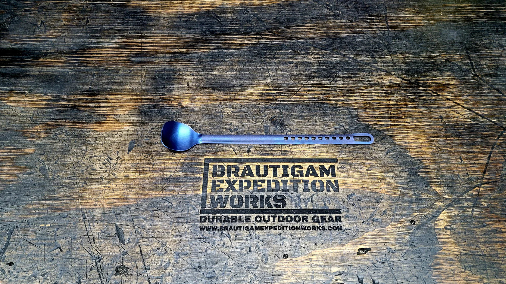 This might be the perfect titanium, long-reach backpacking spoon on the market. Finally a spoon that is long enough to reach into MRE's or pouch type backpacker meals. At just over 9.65" long, it is even long enough to eat your meal with gloves on.
